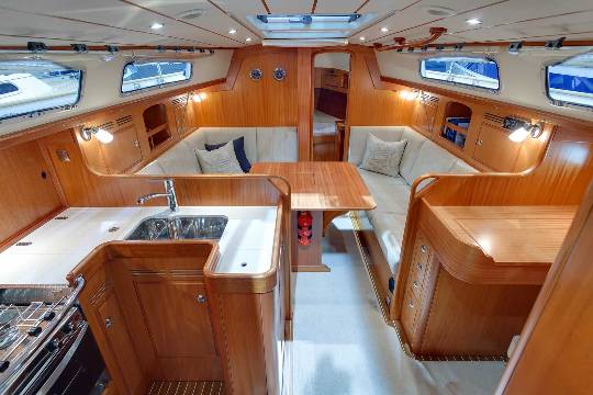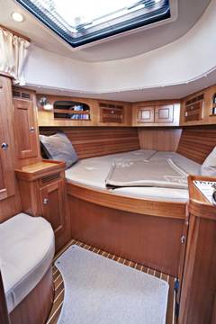 "Pleasurable and easy to sail, this performance-tweaked coastal cruiser still retains that superior level of build and fit out and boasts a well-proportioned interior. Nimble, quick and easy to tack, she provides excellent cockpit comfort for both crew and helm, and is simple for a couple to manage. A quality boat that provides fast yet comfortable push-button sailing."